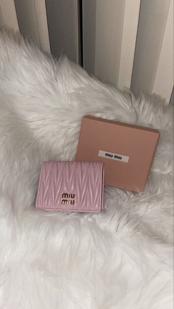 MiuMiuらしいピンクが可愛い三つ折り財布