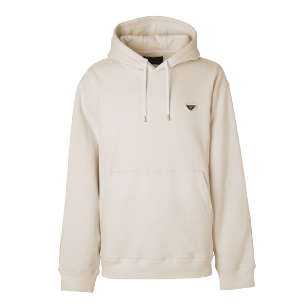 上質なコットンを使用したプラダのプルオーバーパーカーです。シンプルなデザインにアイコニックなトライアングルプレートをあしらったラグジュアリーな逸品。ワンランク上のデイリースタイルに最適です。