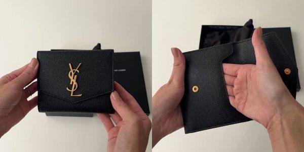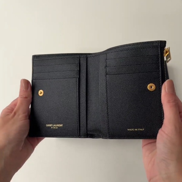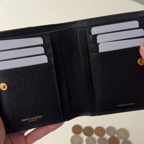最初にご紹介するのは、なんと6万円台から購入できるSaint Laurent(サンローラン)の「アップタウン コンパクトウォレット」。大きなYSLロゴが引き立つシンプルなディティールで、モードな雰囲気が漂っています。