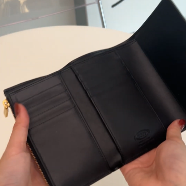 TOD'S(トッズ)の「KATE」は、大ぶりのチェーンモチーフが大人上品で人と被りづらいところが◎三つ折り財布ながら、幅広なサイズ感でカードを見渡しやすいです。小銭入れもマチがあるのでザクザク入ります。