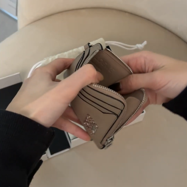 収納力の高いフラグメントケースを探している人は、LOEWE(ロエベ)がおすすめ。両面にカードスロットがついていてかなり大容量。キーリングもついているから、鍵も一緒にまとめられます。ロエベらしい大人のニュアンスカラーもポイントです。
