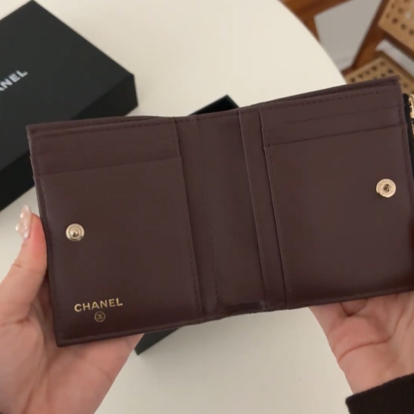 CHANEL(シャネル)の新作二つ折り財布は、ベーシックなCCロゴが光るクラシカルなデザイン。内側がブラウンになっているところが大人レディ♡カードもたっぷり入るから収納力も申し分なしです。キャビアスキンの素材が丈夫なので、キズが付きづらいところも◎