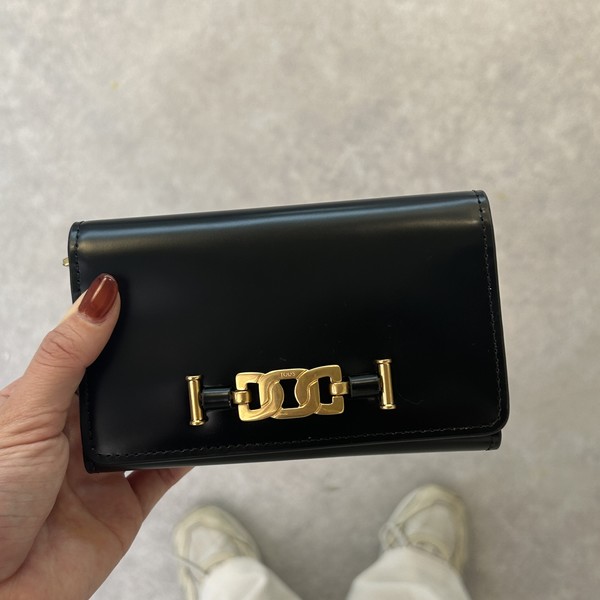 TOD'S(トッズ)の「KATE」は、大ぶりのチェーンモチーフが大人上品で人と被りづらいところが◎三つ折り財布ながら、幅広なサイズ感でカードを見渡しやすいです。小銭入れもマチがあるのでザクザク入ります。