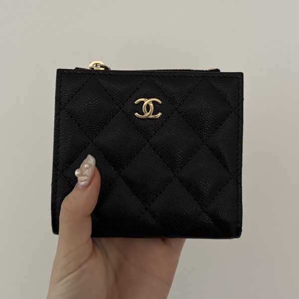 CHANEL(シャネル)の新作二つ折り財布は、ベーシックなCCロゴが光るクラシカルなデザイン。内側がブラウンになっているところが大人レディ♡カードもたっぷり入るから収納力も申し分なしです。キャビアスキンの素材が丈夫なので、キズが付きづらいところも◎