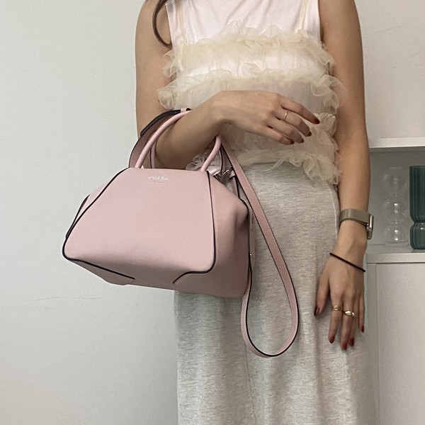 プラダで今新定番として人気を集めているのが「スーパーノヴァ」。独特のフォルムと大人っぽいニュアンスカラー展開が魅力です。マチが広めなので、見た目以上にザクザク入って通勤バッグとしても◎こちらもショルダーストラップ付で、さまざまな持ち方を楽しめます。