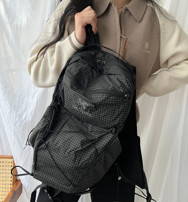 ARC'TERYX(アークテリクス)のシグネチャーロゴがさり気なくあしらわれたナイロンリュックは、アウトドアシーンだけでなくシティスタイルとの親和性も◎。ストリート系から甘めのワンピースまで、意外にスタイリングを問わずきちんと映える優れものです。
