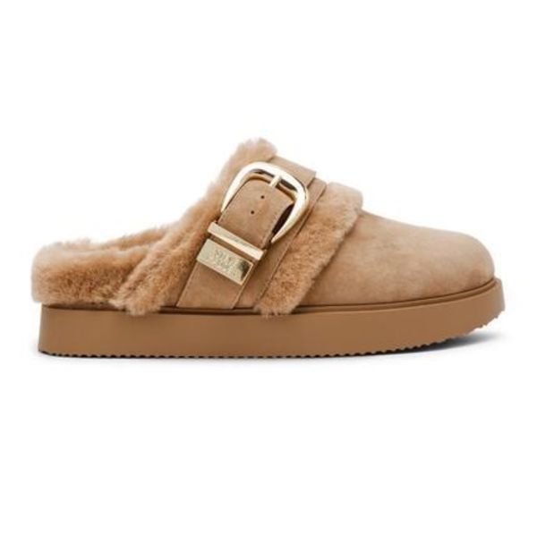 Steve Madden「COZY UP」は、上質なスエードレザーとフェイクファーを使用したサボタイプスリッポン。