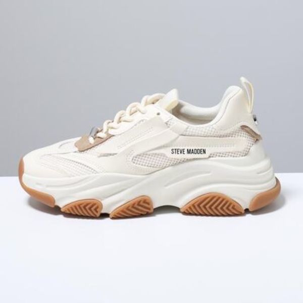 Steve Madden「POSSESSION ボリュームソール」は、つま先にかけて丸みのあるフォルムが印象的なアイコンスニーカー。アーモンドトゥのやわらかなシルエットに厚底ソールを組み合わせ、スタイルアップ効果も期待できます。
