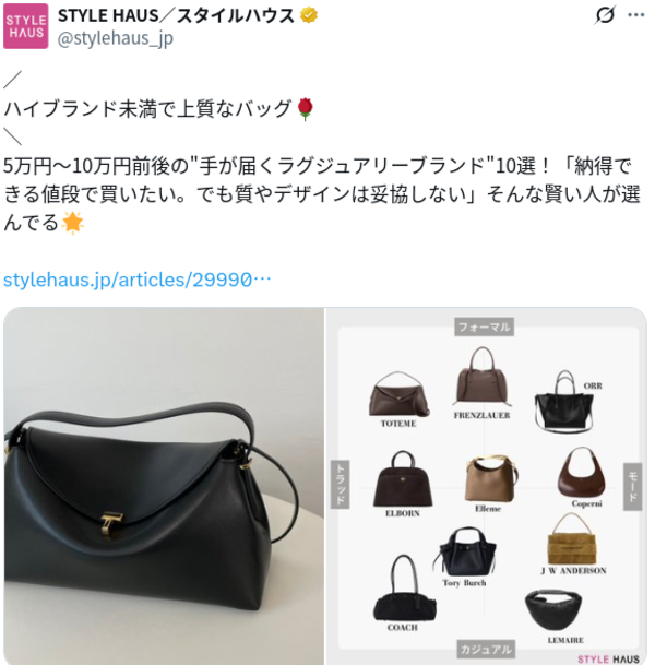 今回は、STYLE HAUSがおすすめする「ミドルラグジュアリー」のバッグブランドをご紹介。本当に価値のある本命バッグを探している大人女子は、絶対に押さえておきましょう!