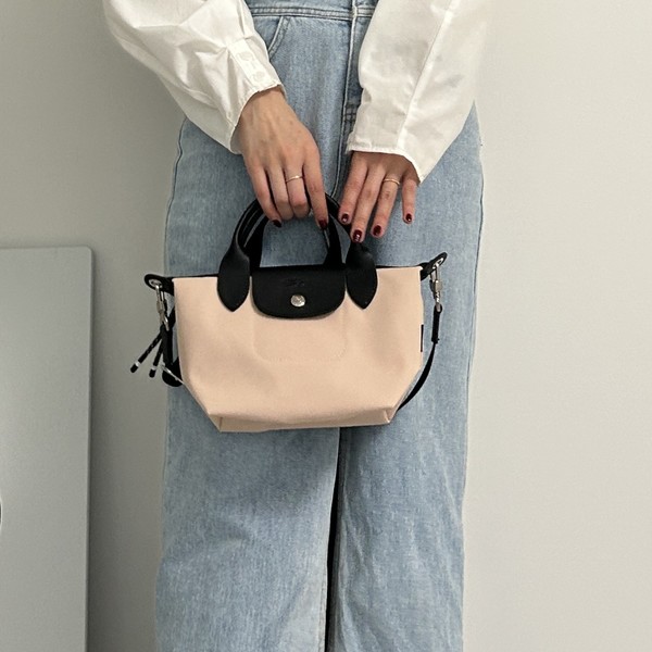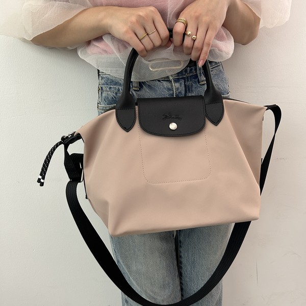 「トップハンドルバッグ」は、ル・プリアージュシリーズの中で最もベーシックなモデル。レザーのフラップとハンドル付きできちんと感満載♡太めのショルダーストラップが付属されているため、快適に持ち歩くことができます。