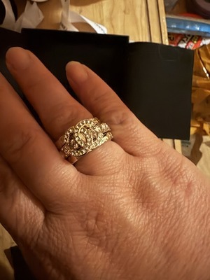 実物もキラキラしていて、重みもあり、やはりシャネルだなと改めておもいました。3連でも単独でも使えて、一番シャネルらしいリングだなと。いろいろお問い合わせくださりありがとうございました。素晴らしい誕生日プレゼントになりました。