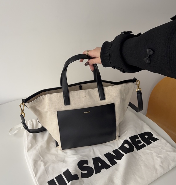 洗練されたデザインで都会的な印象を与える、Jil Sander(ジルサンダー)のWANDER ショルダーバッグ。キャンバス地に艶のあるカーフレザーポケットとハンドルが上品で、ゴールドトーンのチャックなどがコンテンポラリーなアクセントを添えます!