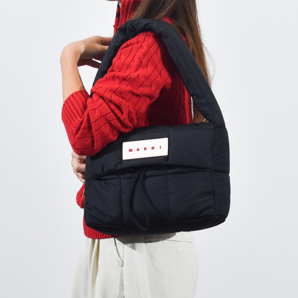 MARNI(マルニ)の「Puff(パフ) バッグ」は、その名の通りパフのようにふっくらとした柔らかなフォルムが、思わず触れたくなるような愛らしさを放つショルダーバッグ。雨の日でも使いやすい素材なのも嬉しいポイントで、実力は折り紙付きのバッグと言えるでしょう!