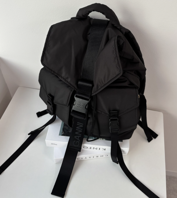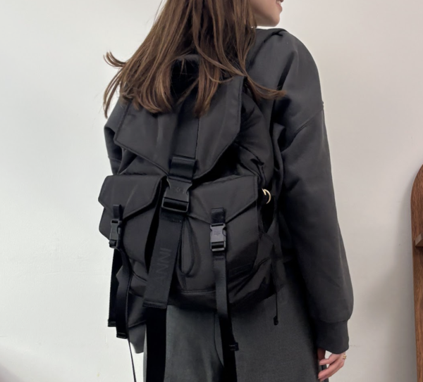 Ganni(ガニー)のナイロンバックパックは、シンプルな中にもさりげない個性が光る、大人のためのデザインが魅力のアイテムです。
