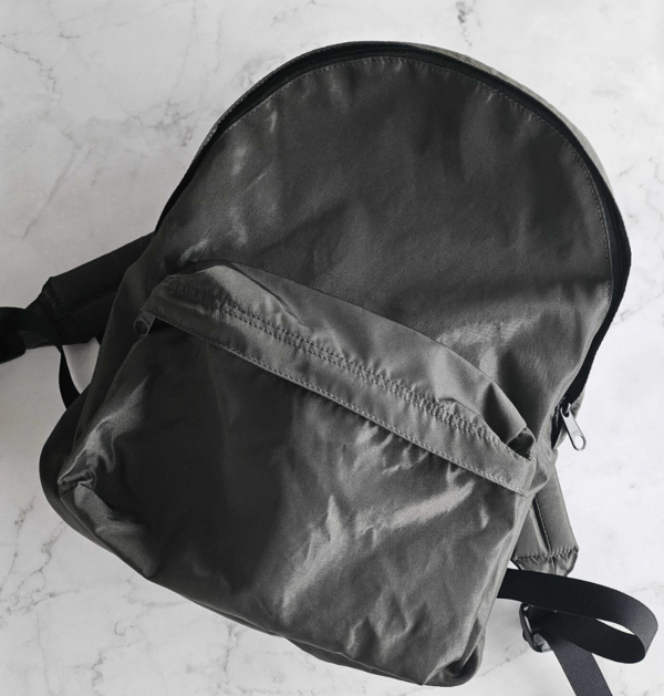シンプルなデザインのナイロンリュックは、どんなコーデにも合わせやすいのが魅力。カラーはブラック・ネイビー・グレーなどの定番色が使いやすく、マットな質感のナイロン素材はカジュアルすぎず上品な印象を与えます。