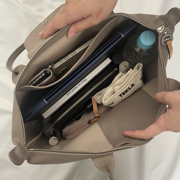 お手頃価格ながら上質で通勤バッグにちょうどいいと話題になっている、韓国ブランドOVHEE(オブヒ)。縦型ですが、13インチのPCもすっぽり。ワンハンドルの持ち手は、長さも調整できるから好みにアレンジも可能です。