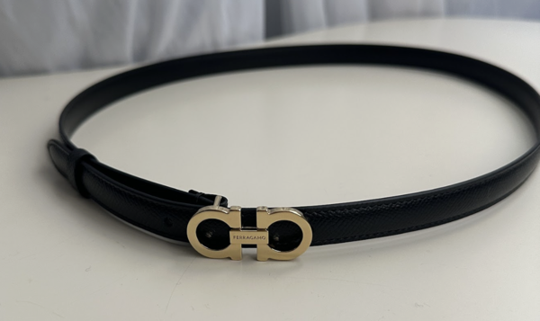 フェラガモのベルトは、「ガンチーニ」と呼ばれる特徴的なバックルが魅力です。丸みのある上品なデザインで、さりげなく高級感を演出してくれるため、ビジネスやフォーマルな場にもぴったりです。