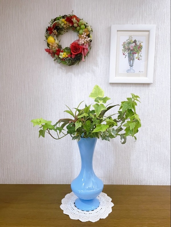 グリーンを生けていたら根が生えてきたので、そのまま水栽培のようにして生けたまま育てています。