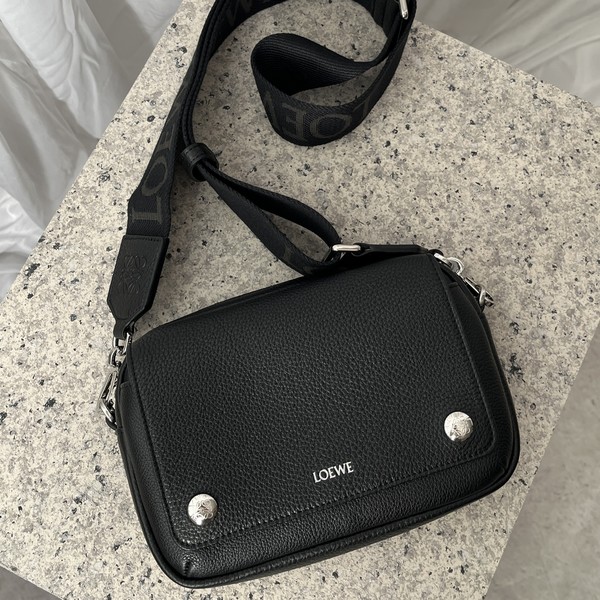 ちょうどいいサイズ感で持ち歩きやすいLOEWE(ロエベ)の「ぺブル メッセンジャーバッグ」。両端にあしらわれたさりげないぺブルボタンがアクセントに♡ベーシックだから、男女ともにガシガシ使えます。