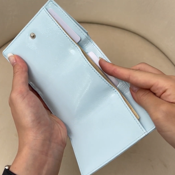 三つ折り財布は、紙幣に折り目が付いてしまうのが難点……。現金を出したとき少しだらしなく見えてしまうことがあります。またコインケースの容量も少なめなので、現金派には不向きです。カードポケットの数も少ないので、使うときにはカードの枚数は最低限に絞ると◎。
