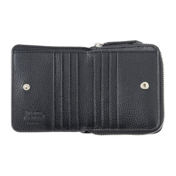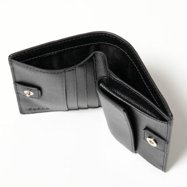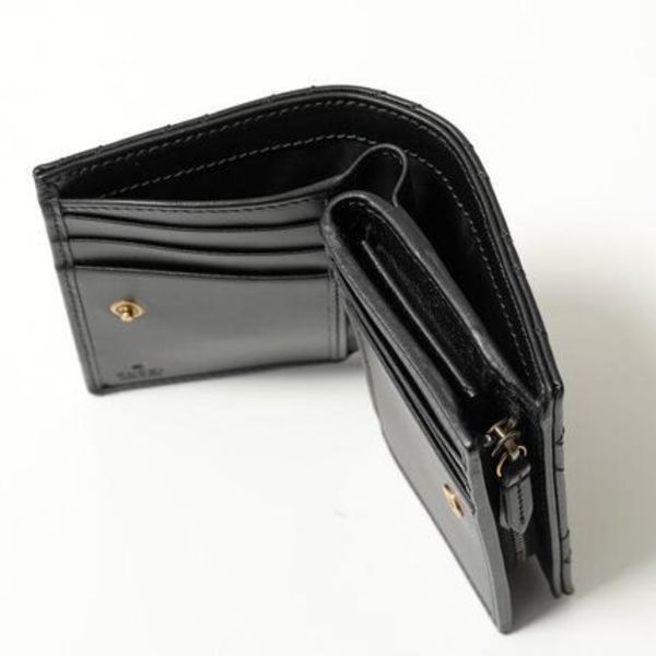 丸みを帯びたコーナーが女性らしさを演出している「カメリア」シリーズの二つ折り財布。フロントにパンチング加工のブランドロゴが施され、シンプルながらも高級感たっぷり。フラップのついた小銭入れはマチがついていて大容量です。