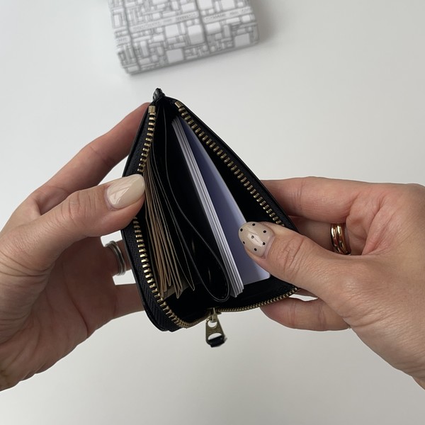 三つ折り以上の容量なので現金派さんも持ちやすいミニ財布です。