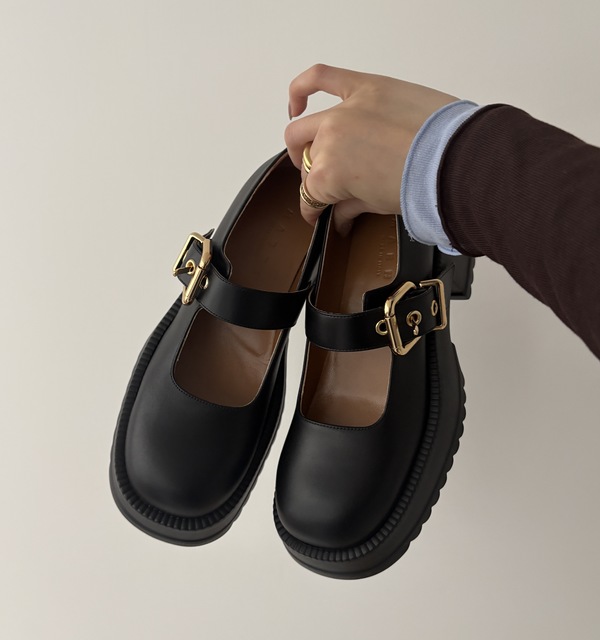 丸みのあるフォルムにゴールドストラップが映えるデザインで、細部まで抜かりないデザインはマルニらしい仕上がりに!履き心地も抜群で、ソックスに合わせて履いてもとってもキュートかも。