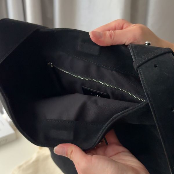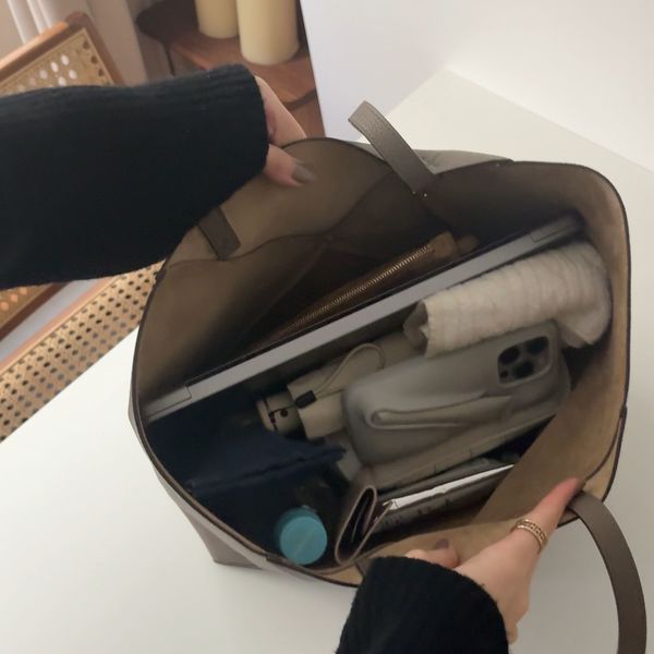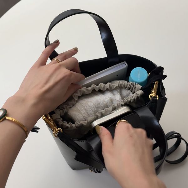 通勤バッグにおすすめなのが、ベーシックなデザインの「Noah Suede Bucket Bag」。見た目以上に入る大容量さながら、スリムに持てるシルエットで持ち歩きもラクチンです。