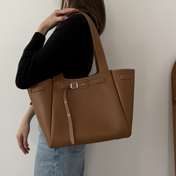 ETTE(エテ)は、無駄のないミニマルなアイテムを展開する韓国のバッグブランド。トレンドのベルトがアクセントになった「SHIMO Shopper Bag」は、マチが広く自立するのが魅力♡PCやノートも入って荷物が増えても安心です。