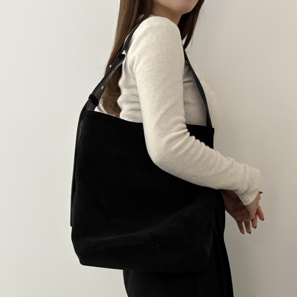 OVHEE(オブヒ)の「Noah Suede Bucket Bag」は、縦型でスッキリとしたシルエットがおしゃれ見え確実♡13インチのPCがぴったり入るので、見た目以上の収納力も自慢です。