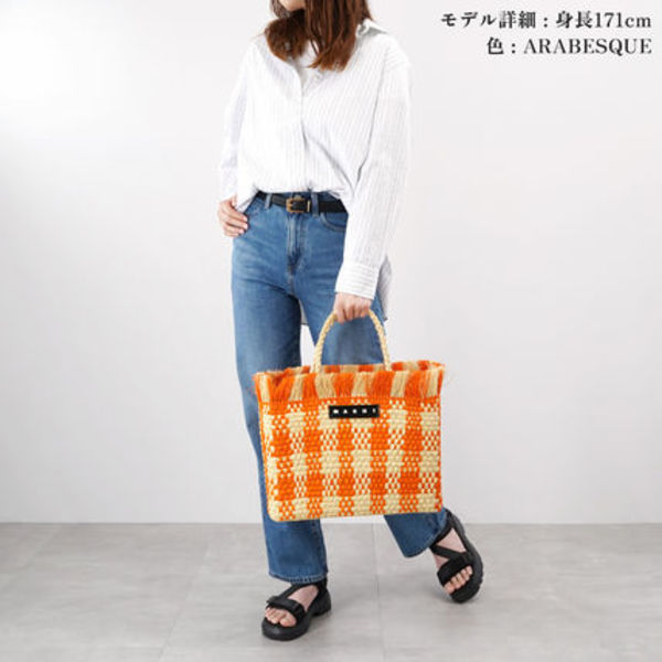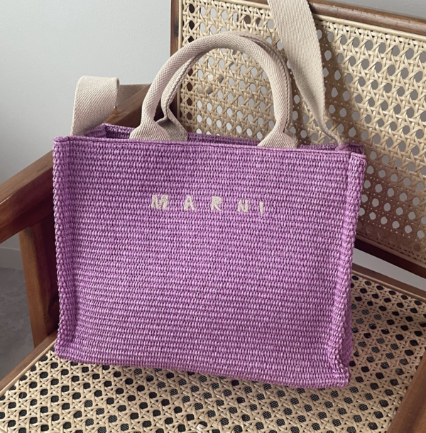 MARNI(マルニ)のアイコンバッグ「トロピカリア」は、ラフィア調のナチュラルなボディに、上質なレザーを組み合わせたバッグ。刺繍のロゴがポイントとなり、都会的でありながらリラクシーな雰囲気を演出します。