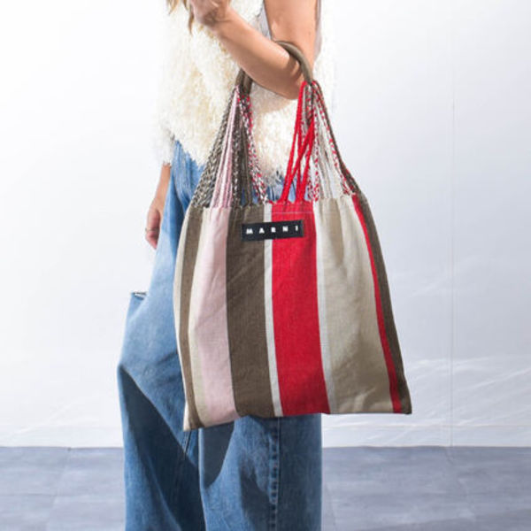 直線的なバスケットバッグやハンモックをイメージしたハンドバッグなど、温かみのある手仕事の風合いが感じられるのも特徴。ファッションアイテムとしてだけでなく、コーデの主役になる存在感を持っているのがマルニバッグの魅力です。