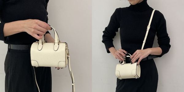 ∟カジュアル派さんにおすすめなのが、コロンとしたフォルムが可愛い「モチ」。取り外し可能な付属のストラップが付いているので、マルチに使えて◎程よくリラクシーなシルエットでカジュアルコーデとも相性抜群です。