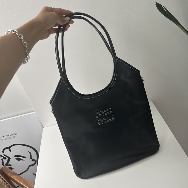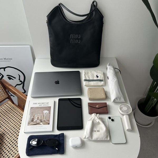 MiuMiu(ミュウミュウ)の新定番「IVY」のレギュラーサイズは、まさに電車通勤の人におすすめしたいスリムデザイン♪マチのない薄型ながら、13インチのPCが入るちょうどいいサイズ感で実用的です。