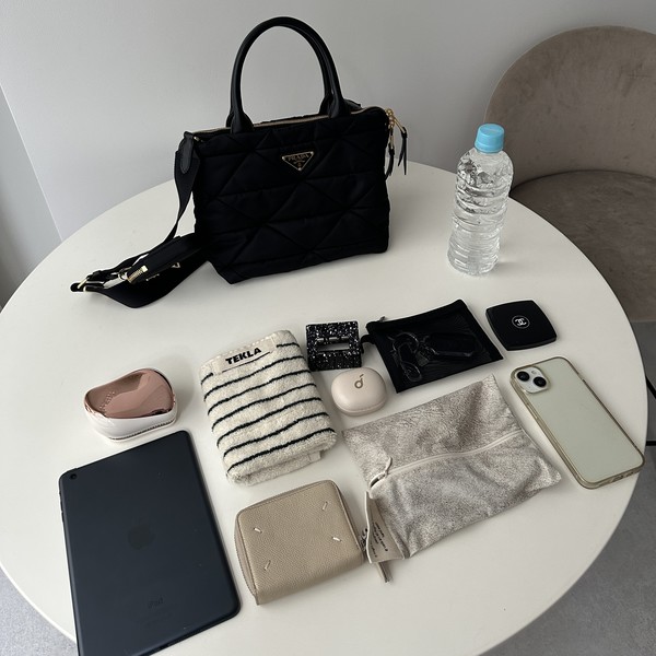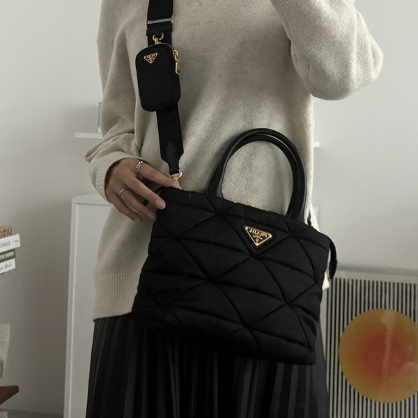PRADA(プラダ)の大人気なキルティングナイロントートから、電車通勤にもちょうどいいスモールサイズが登場!iPad miniも入る十分なサイズ感なので、A4書類やPCを持ち運ぶ必要がない方におすすめ。太めのストラップには、ミニポーチが付いていてイヤホンやリップを分けて収納しておくのも◎