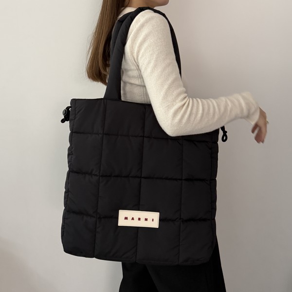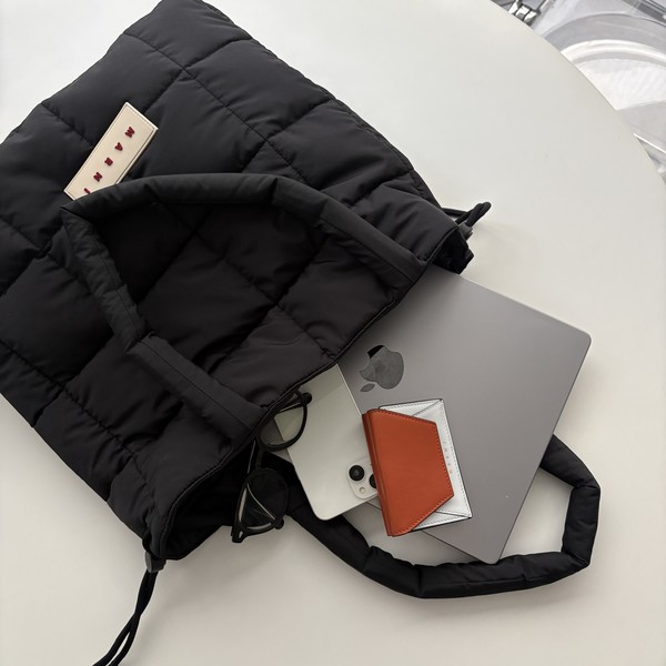 MARNI(マルニ)の「Puff トートバッグ」は、SNSでも注目されている通勤にもぴったりな“最強バッグ”♡14インチのPCが余裕で入る大容量さで、ふかふかな素材だからPCケース要らず。開口部は、キュッと絞れるので中身が隠れて防犯面も安心です。