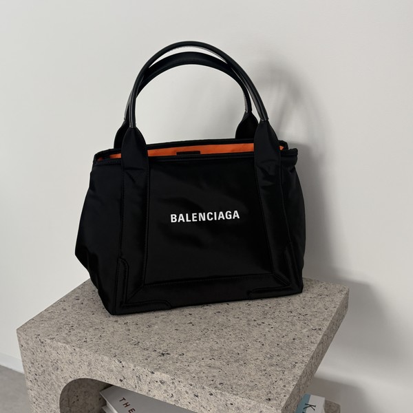 BALENCIAGA(バレンシアガ)のロゴが可愛い「カバ」シリーズ。ナイロン素材の展開もあり、軽くて大容量なバッグを探している方にぴったりなんです。ブラックのシンプルなデザインながら、内側のコントラストがアクセントになっています。