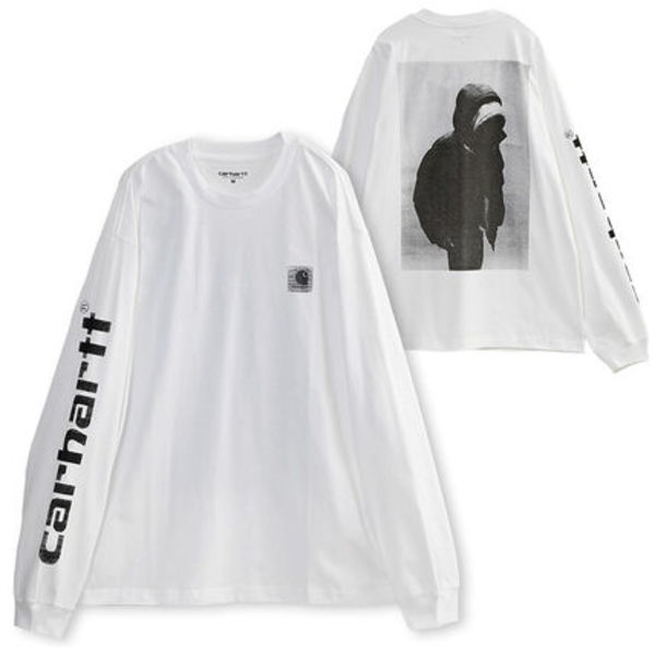 中厚手のオーガニックコットンジャージーを使用したゆったりとしたフィット感のカーハートのロングスリーブTシャツです。バックのフォトプリントや袖ロゴプリントなど90年代の雰囲気が漂うトレンド感のある逸品。