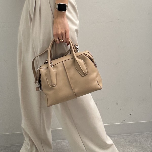 ∟TOD'S(トッズ)の「D-Styling」は、センターのラインやステッチがアクセントになったタイムレスなディティールが魅力♡長財布も収まる絶妙なサイズ感で、困ったときの救世主に♡一緒に500mlペットボトルなども入れられるから、暑くなるこれからの季節にもおすすめです。