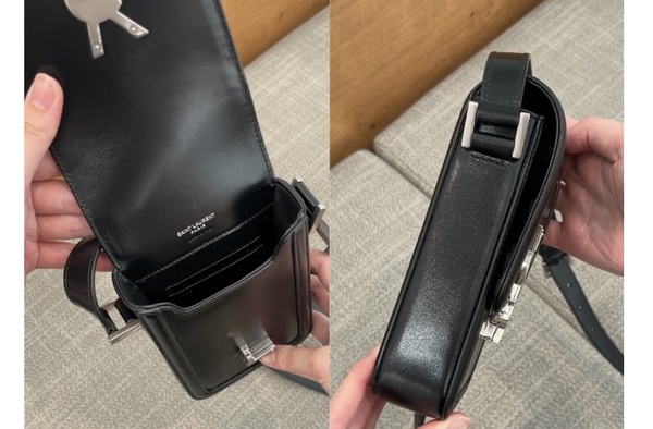 フラップに回転式のYSLモノグラムクロージャーをあしらったSaint Laurent(サンローラン)の縦型ショルダーバッグは、ミニマルサイズながらも抜群の存在感を放つデザイン。内側には便利なカードスロットが2つ備わっていて、ほんのり丸みを帯びたボックスシルエット+艶めきをまとったスムースレザーがクラス感たっぷりです。