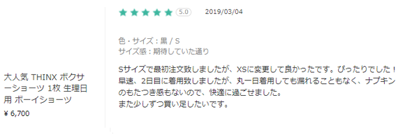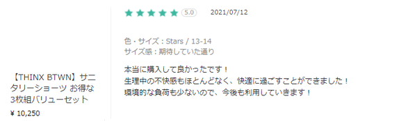 日本から買える海外通販サイトBUYMA(バイマ)でも、続々とThinxを購入した方のレビュー・口コミが寄せられています♪