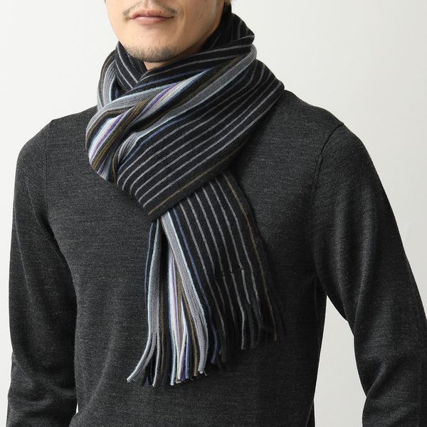 イギリスのファッションブランドPaul Smith(ポールスミス)。ブランドを象徴するカラフルなストライプ柄のマフラーは暗くなりがちな冬のファッションのアクセントとしてもぴったりです。