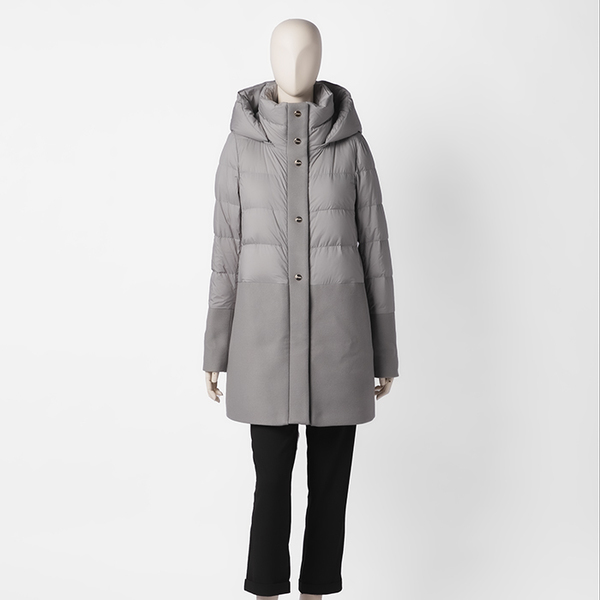 より女性らしい雰囲気で綺麗めに着たいという人は、【(上)ウール✕(下)ダウン】タイプを選ぶことをおすすめします。フードは取り外し可能なので、子どもの卒入園式や結婚式といったフォーマルな場ではフードを外して着ています!